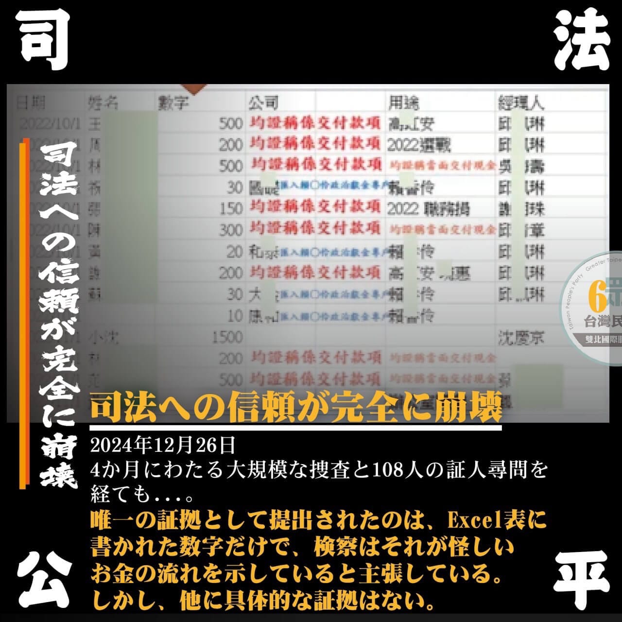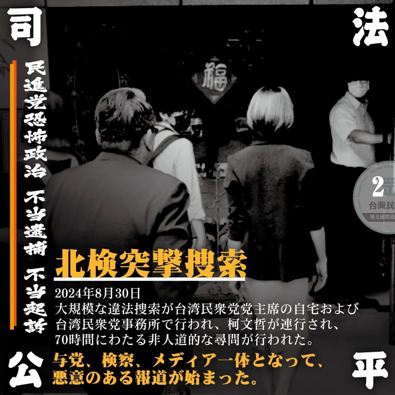 2024年8月30日(金)台北地方検察庁は柯 文哲自宅、個人事務所を大規模に捜索し、台湾民衆党(TPP)の事務所を違法に捜索しました※1。
