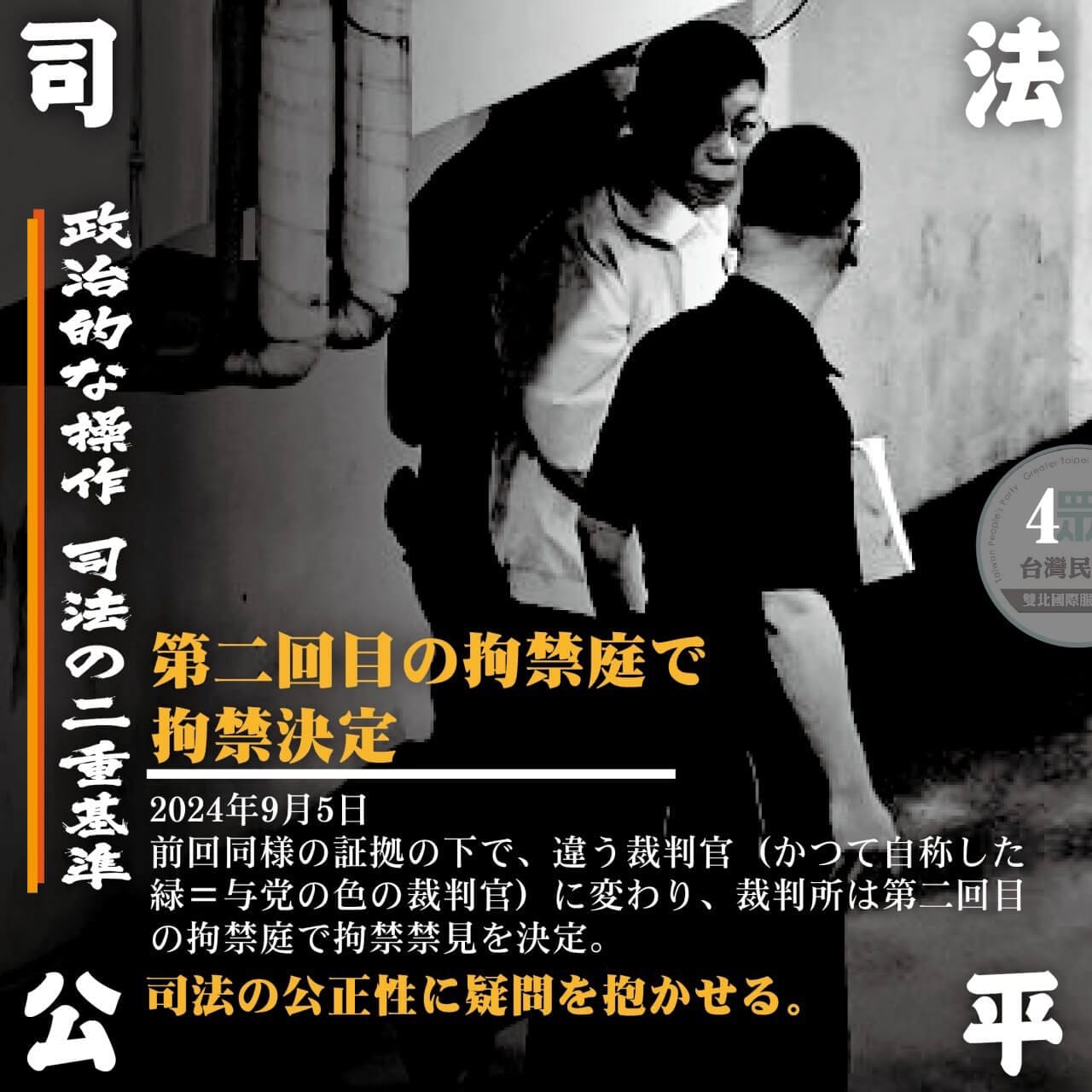 同じ証拠に基づき、9月5日、与党寄りの呂 政燁(Lu Zheng-ye)判事*2 は、彼を拘束し、出頭しないと裁定した。