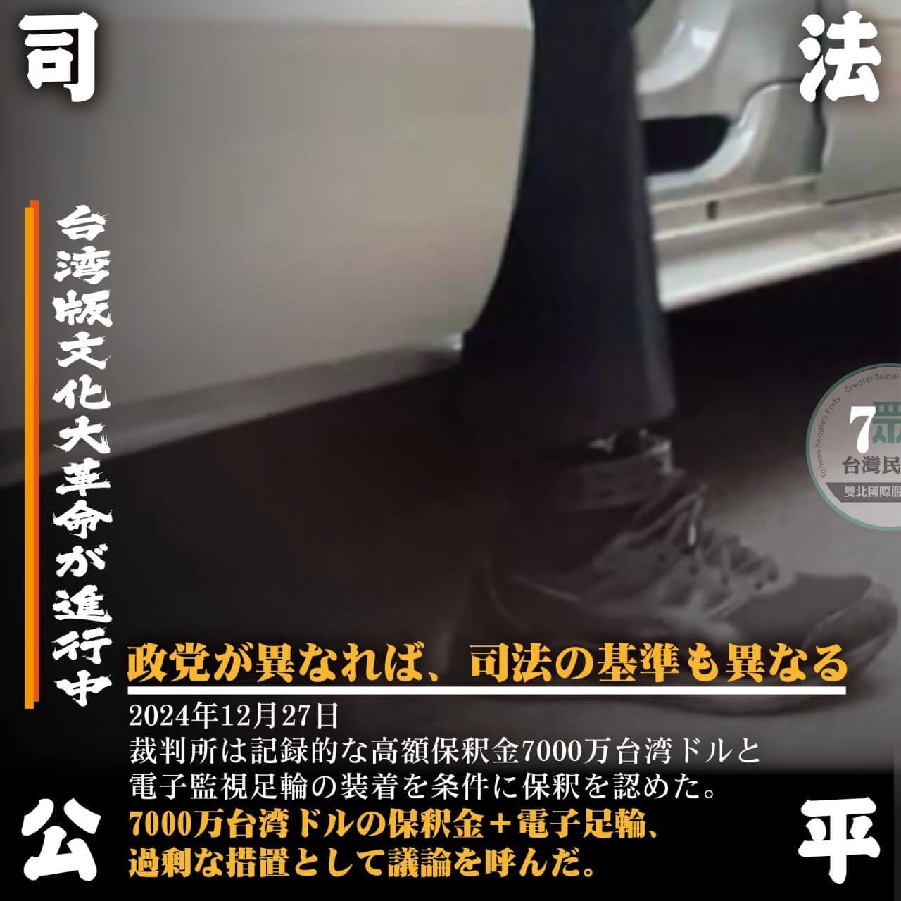 2回目の保釈金は7,000万台湾ドルで、これは政治家にとって史上最高額であり、彼は電子的な足かせを着用しなければなりません。