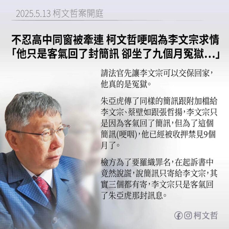 Finally, the lawyer also mentioned that the court’s previous ruling that the detention was based on “respect for the trial level system”, but now that more evidence has surfaced, it is impossible for the higher court to know more about the case than the collegial court, and the number and complexity of the Core Pacific City (Living Mall) case file are so large and extensive that it is impossible for the higher court to complete the case file in just a few days.Ko Wen-JeReally, enough is enough!
