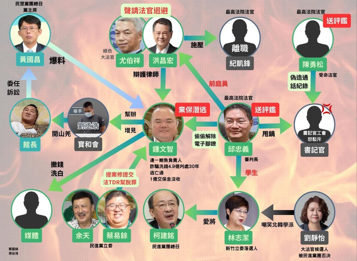Huang Kuo-chang repeatedly stated in live broadcasts that Chung Wen-chih maintained close ties with DPP (Green Camp) elites. He revealed that some DPP legislators—including Tsai Yi-yu, who was once approached by a lawyer—proposed amending the law during Chung’s trial, allegedly to help exonerate him. Although Tsai Yi-yu claimed he had not seen Chung in five years, the intent behind the amendment was still questioned.